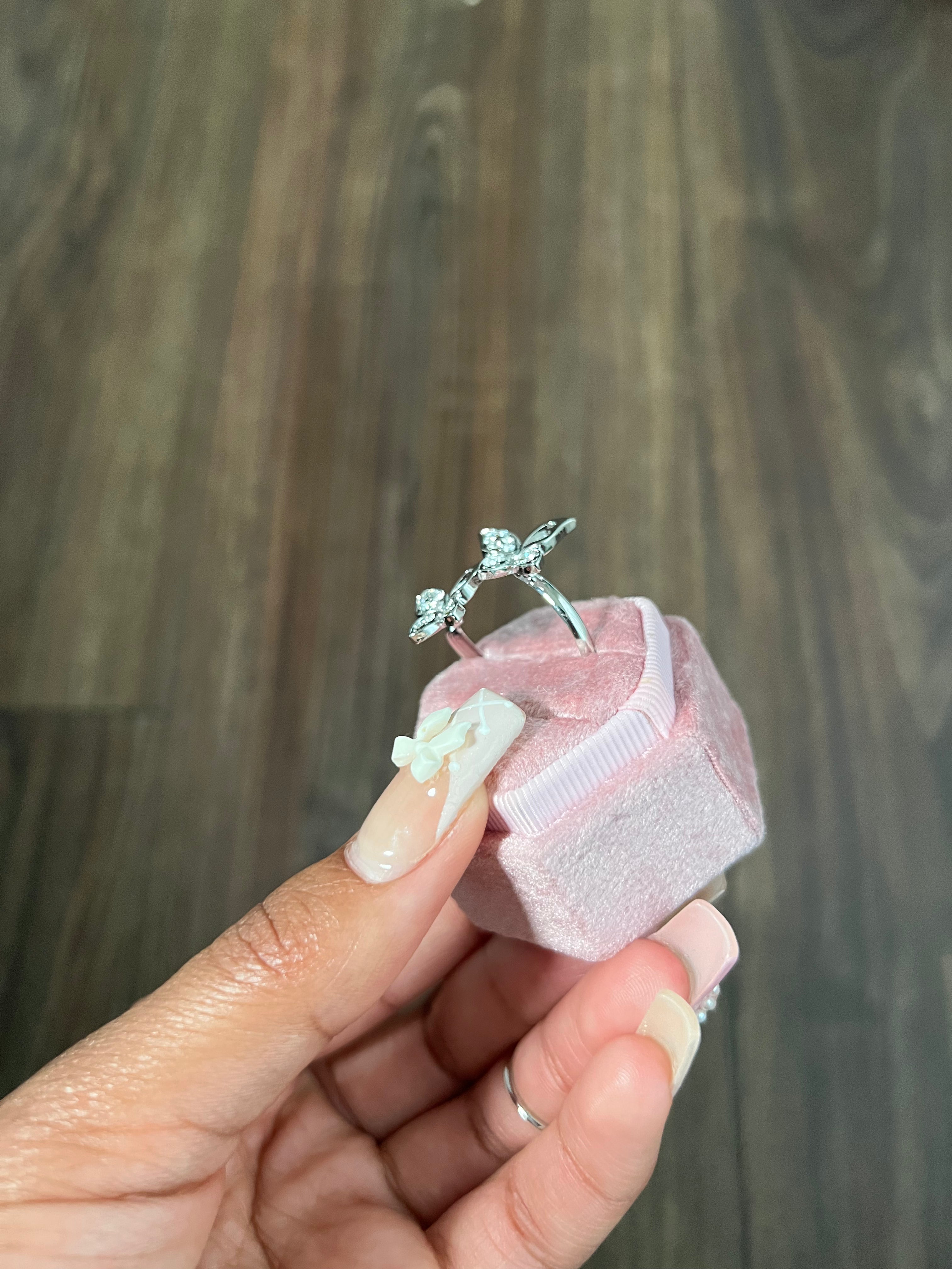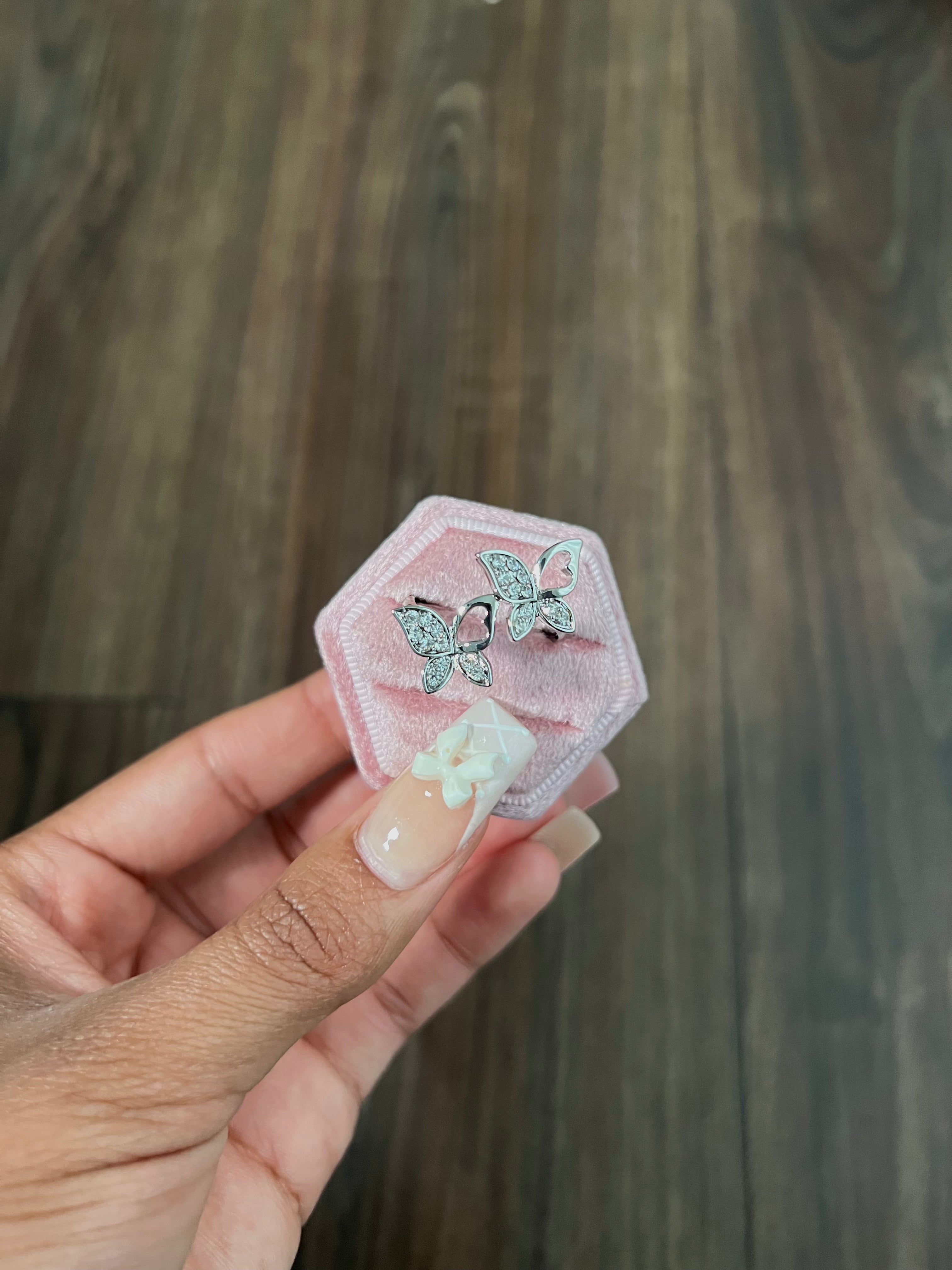 Adjustable double butterfly ring with glimmering cubic zirconia stones