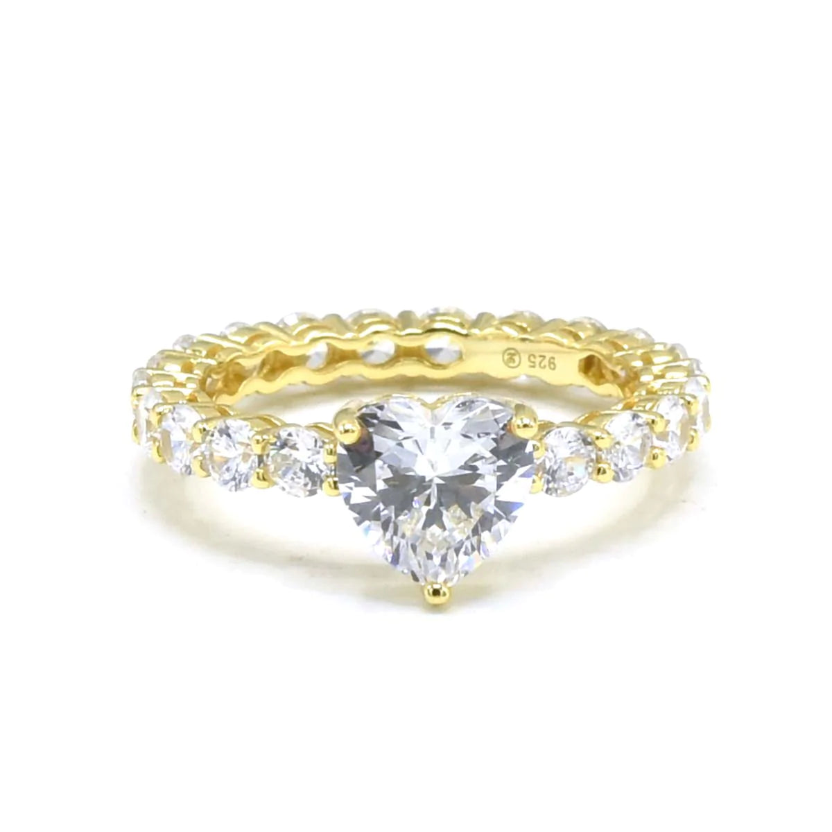 Show your true love with this Fit For A Princess Ring! Designed with 925 sterling silver and a Cubic Zirconia heart and stones, this luxurious ring is sure to make her feel like royalty without the risk of tarnish! Just add a crown!