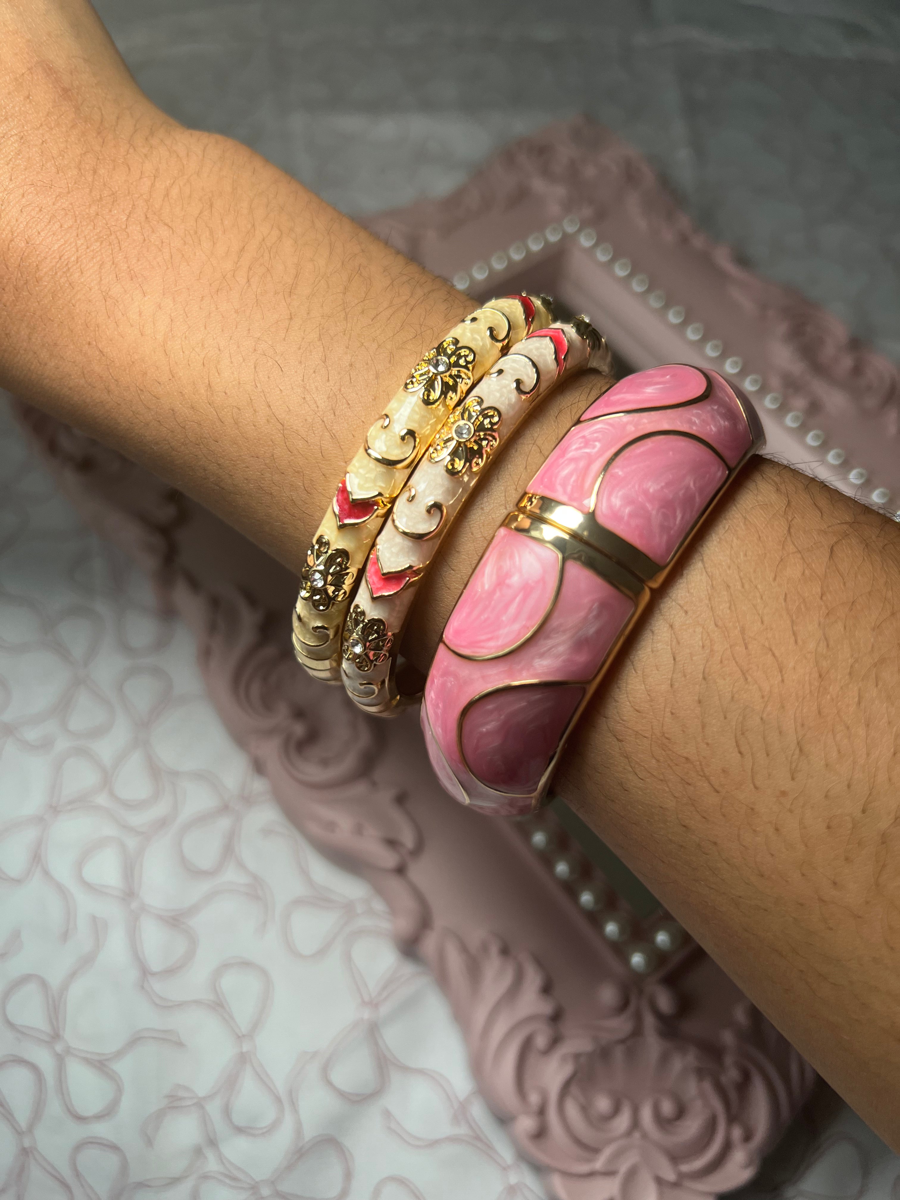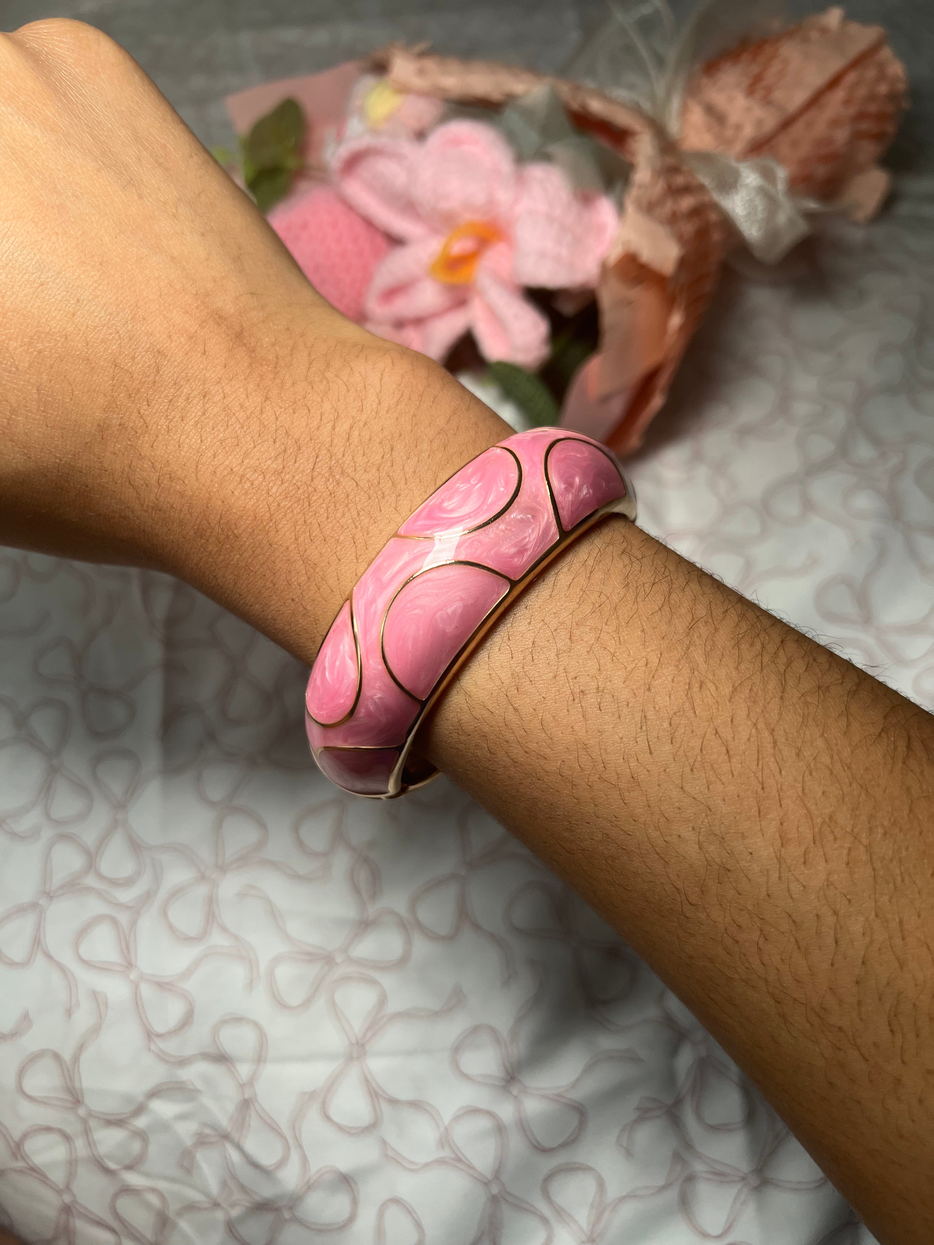 bangle bracelet chunky pink with abstract gold designs gold plated