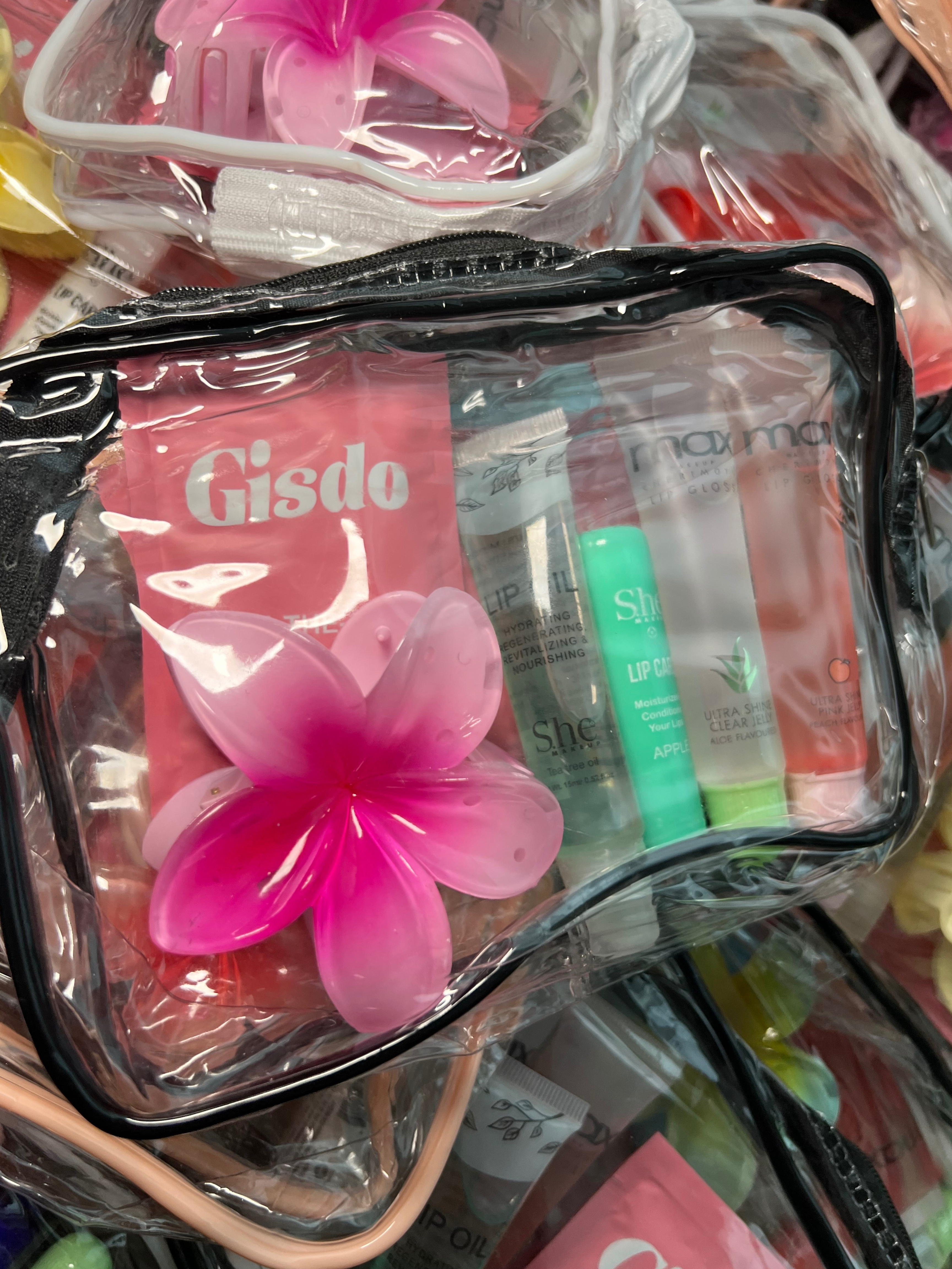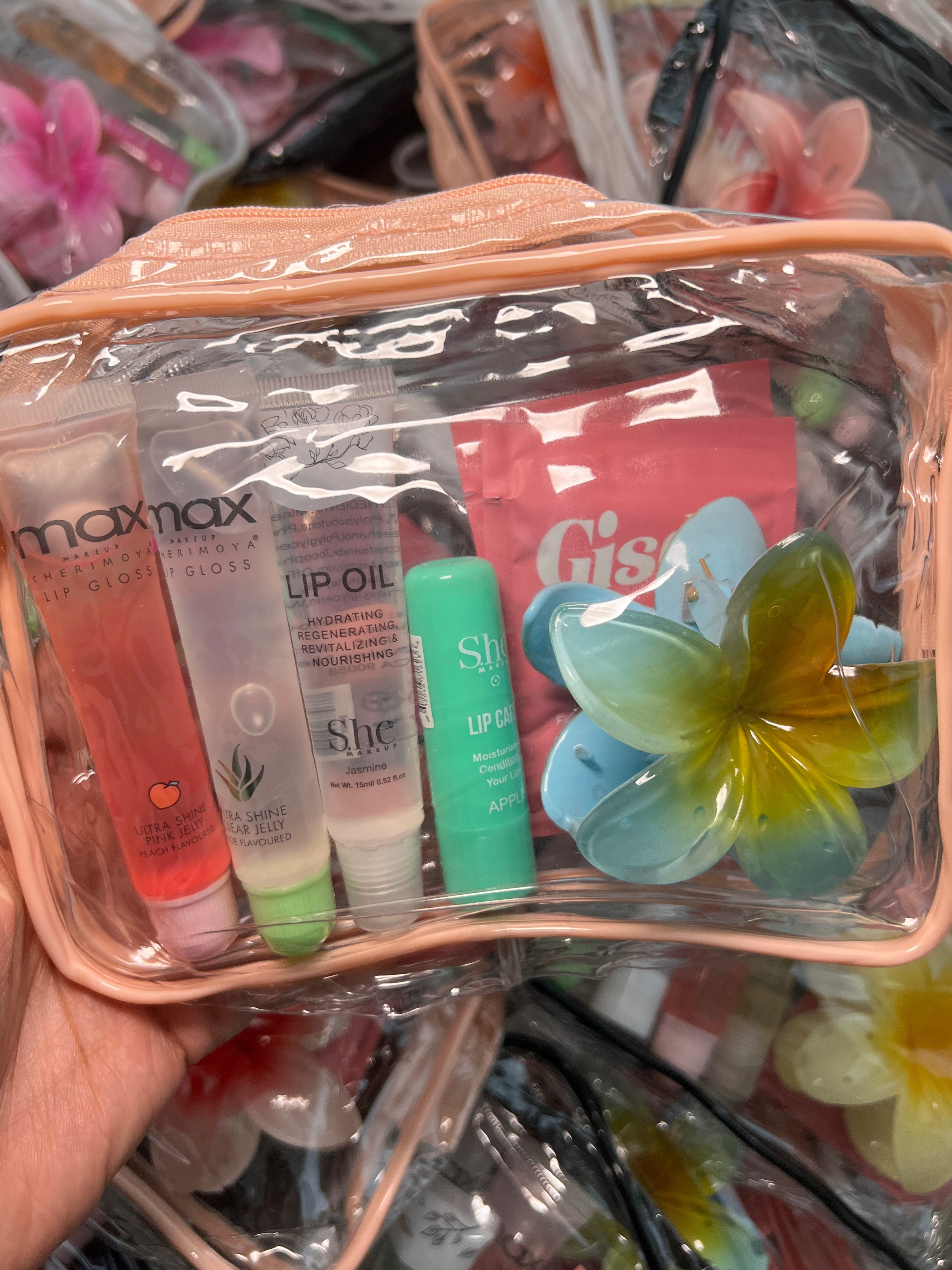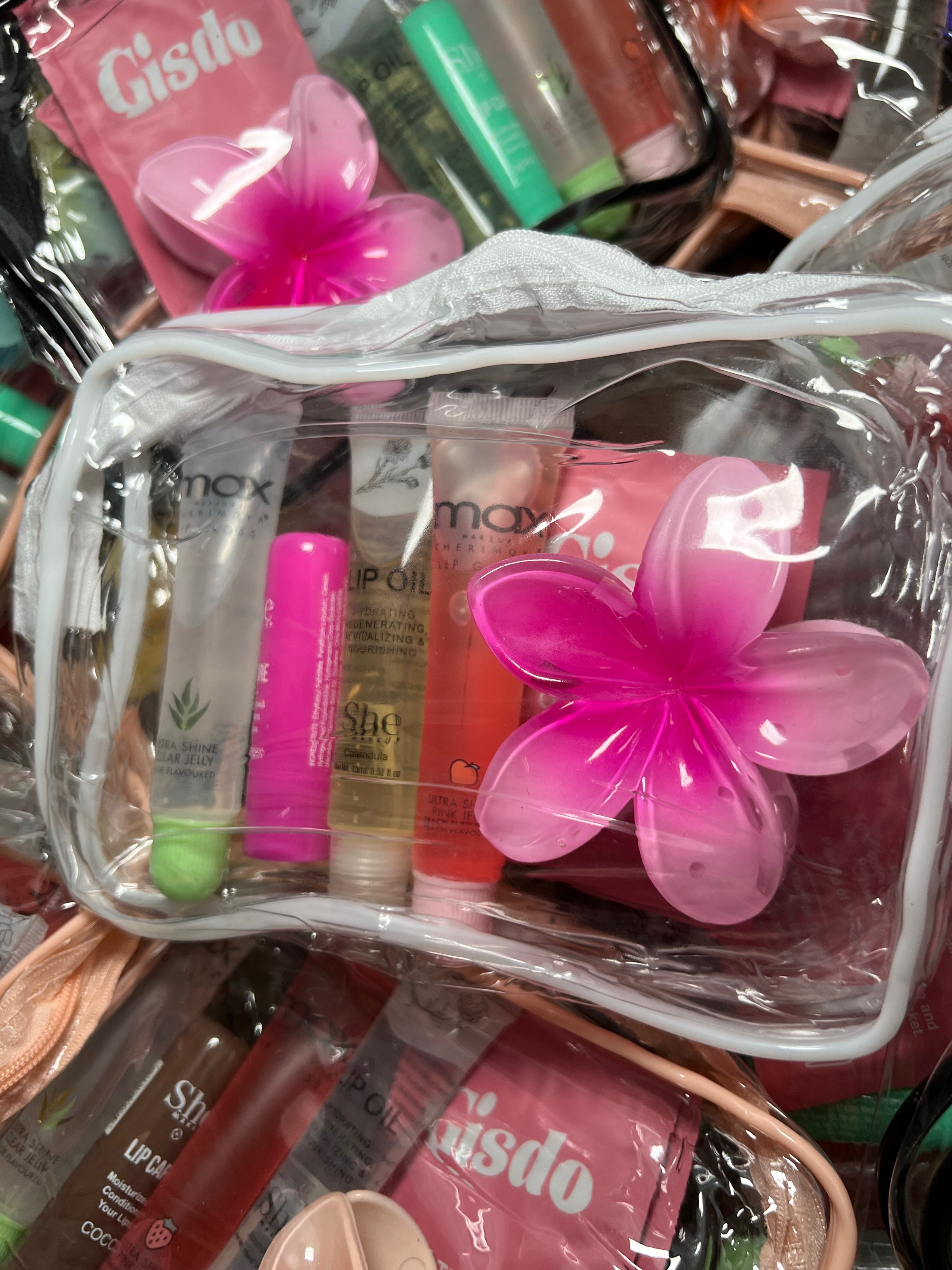 Get ready to take on the day with our Beauty Bag Bundle! This convenient set includes the essentials you need for your beauty routine on-the-go. Stay fresh and hydrated with our two lip glosses, lip oil and scented lip balm, secure your hair with our claw clip, and keep things clean with two alcohol-free all-purpose wipes. Perfect for everyday use or travel!